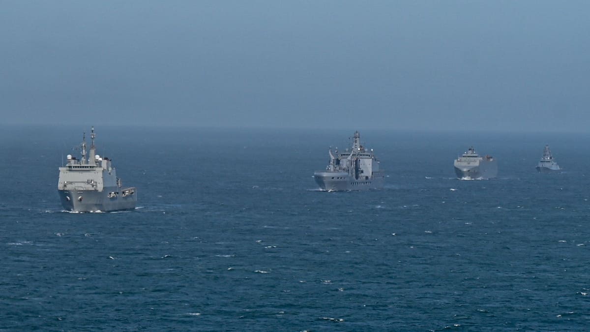 Buques aliados escoltan al buque de transporte logístico Ysabel A-06 .