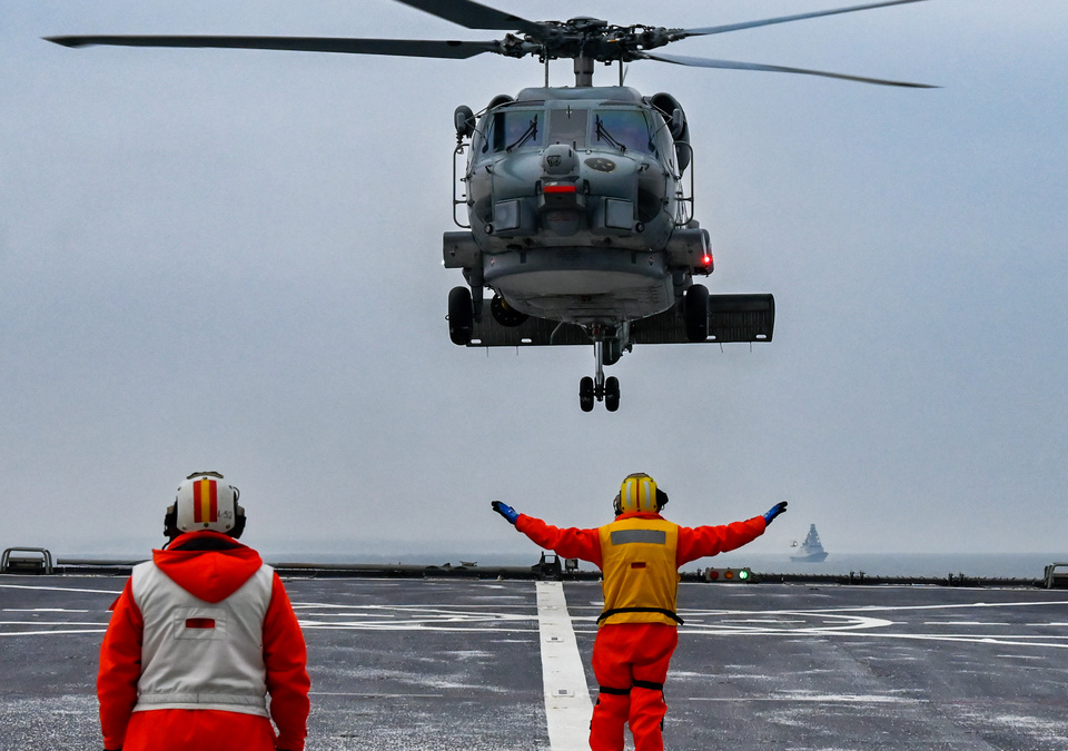 A lo largo del despliegue el buque operó helicópteros navales y coordinó actividades de mando y control desde su centro de operaciones embarcado. Las maniobras incluyeron operaciones aéreas, integración de sistemas de comunicaciones aliados y ejercicios destinados a reforzar la preparación operativa de la fuerza.