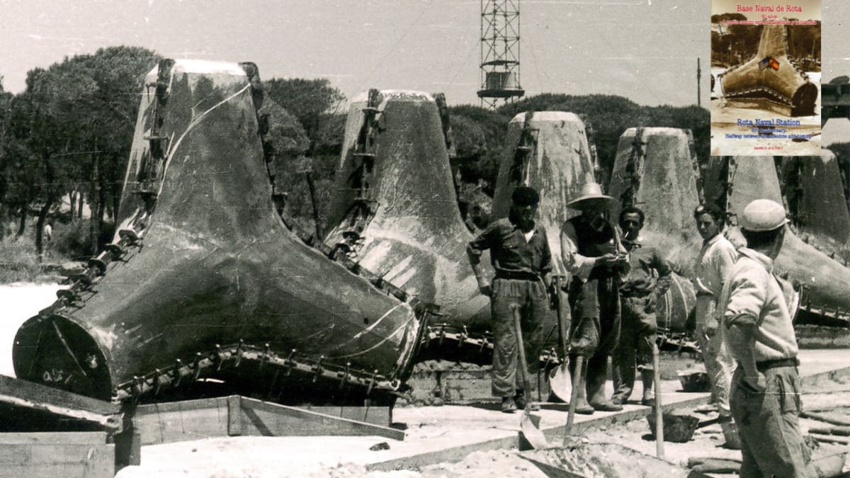 A mediados de los años cincuenta, la construcción de la Base Naval de Rota supuso uno de los mayores retos técnicos afrontados en España en el ámbito marítimo. La solución adoptada para proteger el puerto frente al oleaje atlántico situó a Rota en una posición pionera dentro de Europa. Por primera vez se aplicó de forma sistemática la tecnología de los tetrápodos de hormigón, un diseño de origen francés que rompía con el uso tradicional de bloques cúbicos.